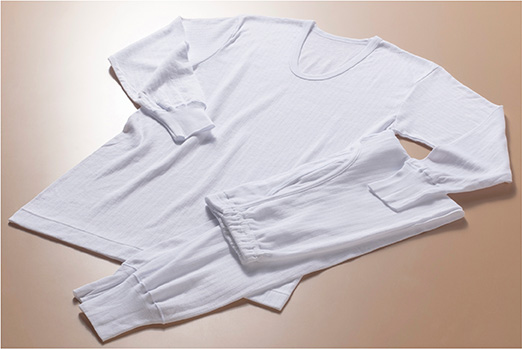 大量の汗をかいたり、肌にクリームなどを塗った後は、綿の肌着が水分・油分を吸収します。すると温かさを保つ空気の層がなくなるため、体温を奪い、冷えにつながるのです。
