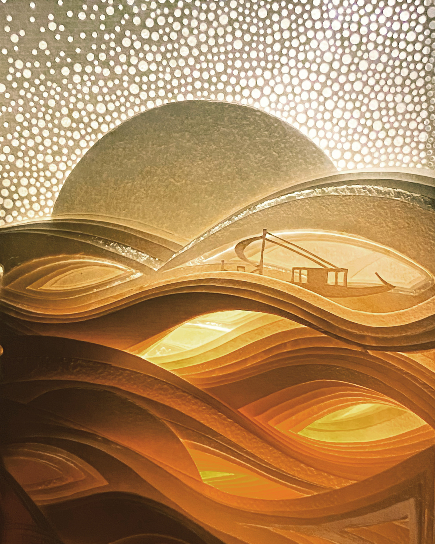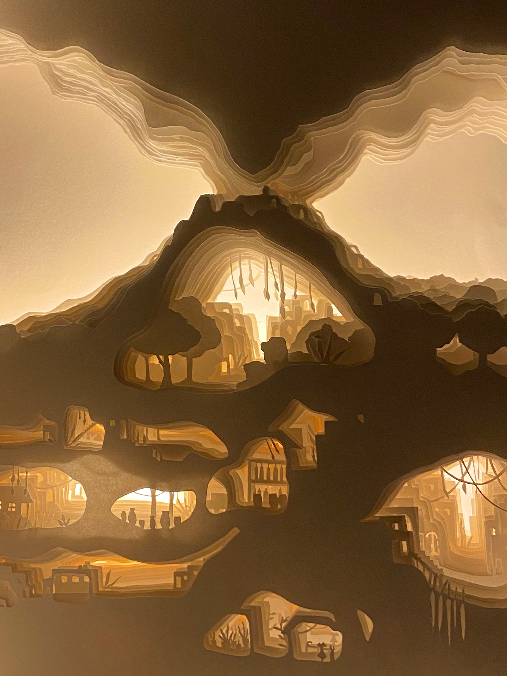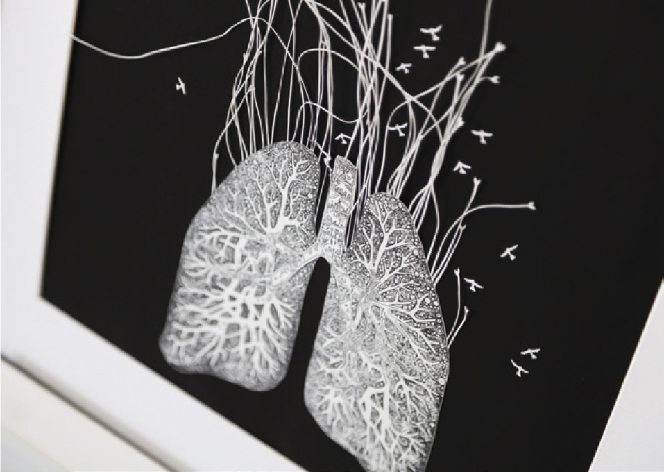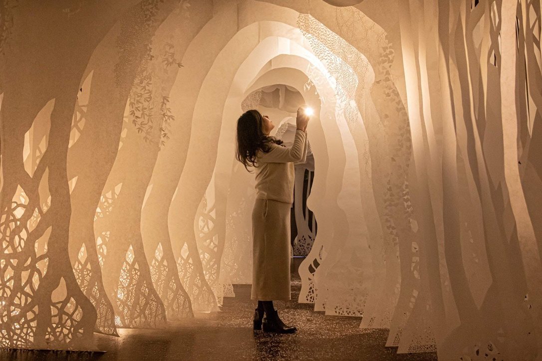 他のアートも学んでみようとアートスクールに通い、そこで出会った恩師が大きな存在になりました。人の心を動かす力のある方で、近くで人としてのあり方を学ぶことで、自分の作品が表現できるようになったと思います。また、とても自由な発想で、思考の枠を広げてくれる方で、私が「この小さな切り絵の世界に入りたい」といったら、「入れるくらいの作品をつくればいいじゃない」なんて。その言葉が今の立体的で巨大な切り絵作品につながっているんです。