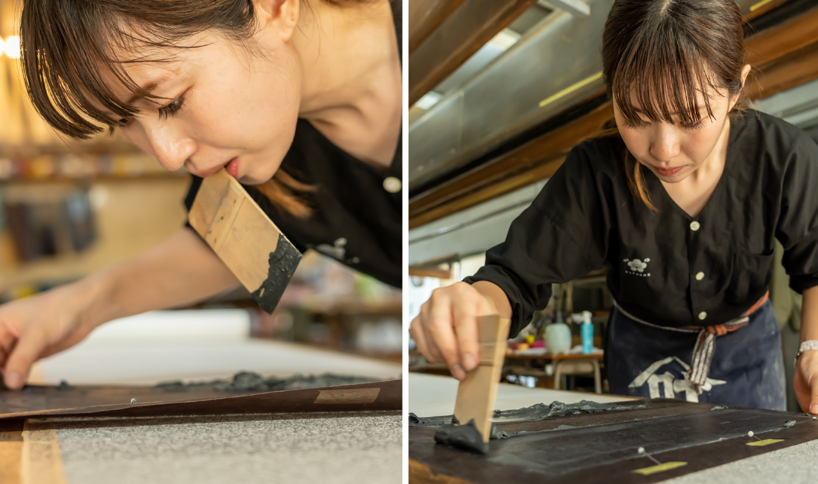 江戸小紋は柄が細かいほど難しくなります。「極鮫(ごくさめ)」や「縞」など、江戸小紋の中でも特に難しいとされる柄を染め始めたのは四代目となる父の代からです。「型付け」も染めた後に型のつなぎ目やムラを直す「地直し」の作業も、難しい柄ほど高度な技術が必要になるため、染められる職人は少ないです。私は職人になって11年経ちますが、まだ「完璧だ」と思えるまでには至っていません。好きなだけ時間をかけられるのであればできるかもしれませんが、納期もありますし採算がとれなくなってしまいますから。父は器用ですし、仕事が早い。私も父のようにどんな柄でも染められる職人になりたいです。